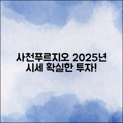 2025년 10월에 경상남도 사천시 사남면 사천푸르지오 아파트의 투자 가치는 부동산 시장의 흐름에 따라 크게 영향을 받을 것입니다. 이 가이드는 사천푸르지오 아파트 투자에 대한 실용적인 단계별 지침을 제공합니다.
