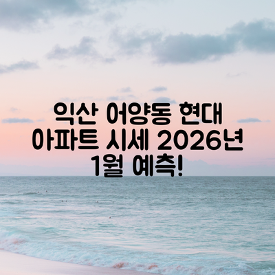 여러분, 전라북도 익산시 어양동 현대 아파트에 대해 고민하고 계신가요? 매매 시세가 어떻게 변화할지 궁금하실 텐데요. 특히 2026년 1월은 아파트 시장에 큰 변화가 있을 것으로 예상됩니다. 특히, 매매 전략이 중요하죠.